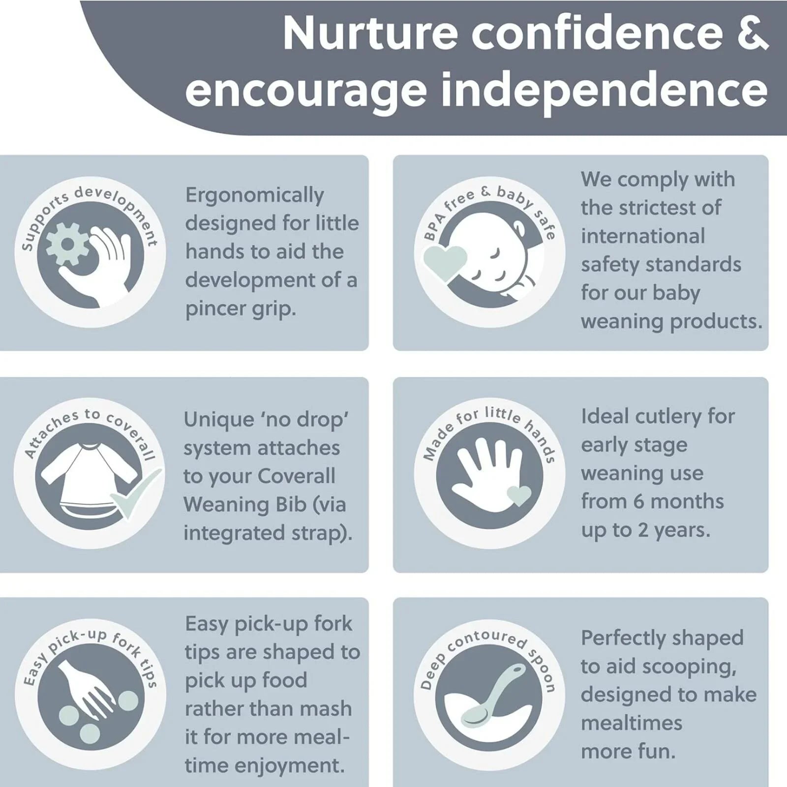 Durables et polyvalents : les couverts peuvent être utilisés avec ou sans lanières à mesure que votre enfant grandit.