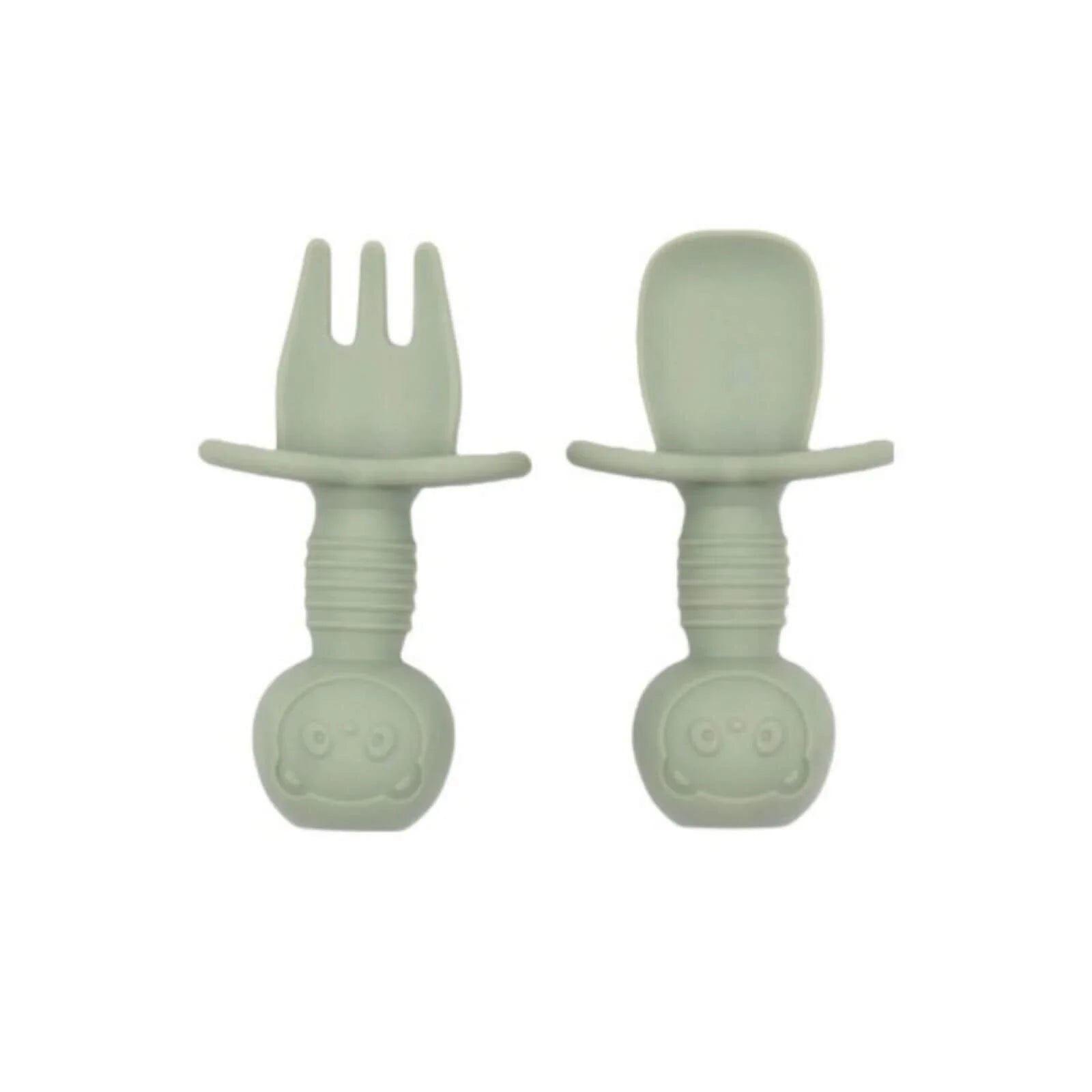 Ensemble de couverts d'apprentissage en silicone BLW Essentials - Sauge