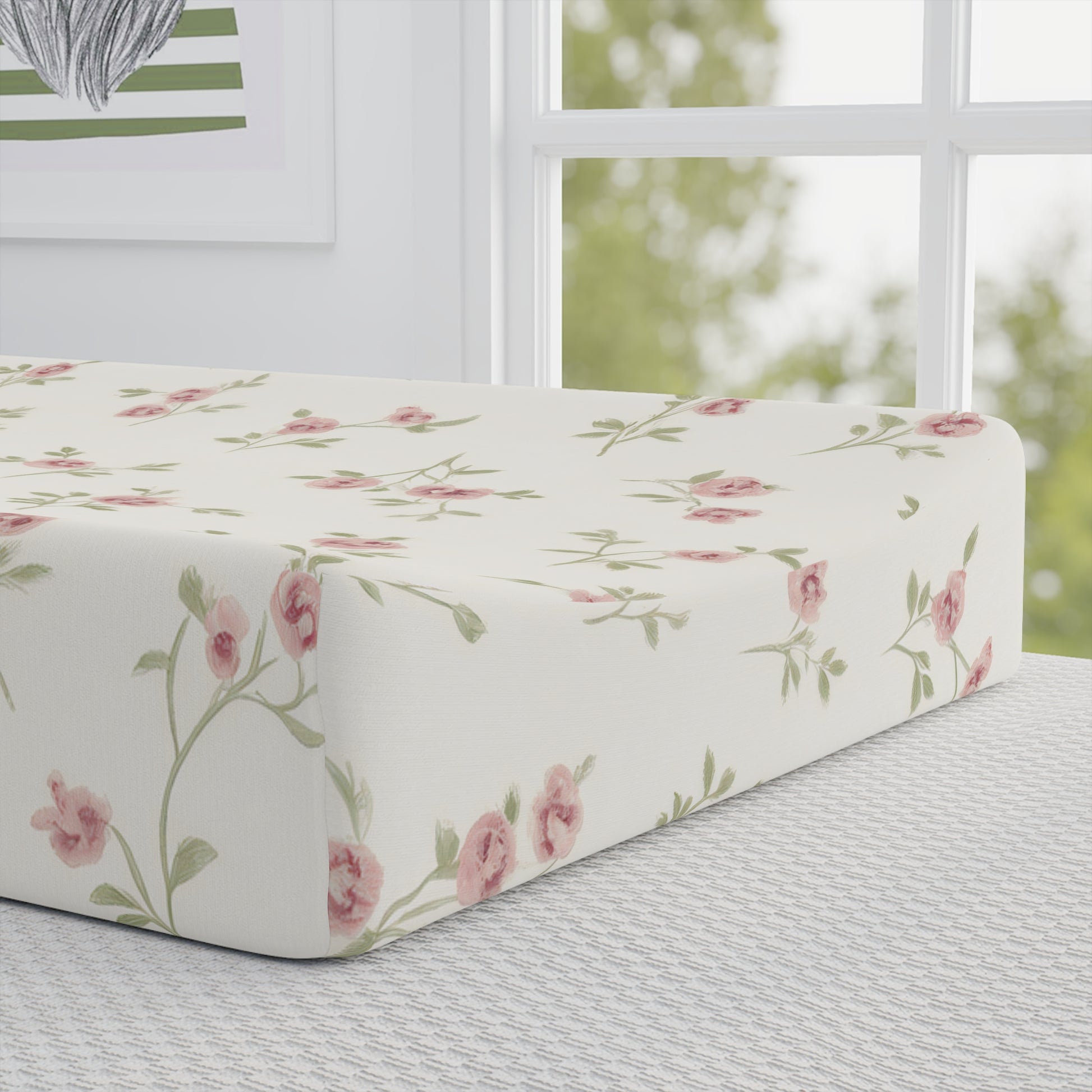 Floral Rose Baby Changing Pad Cover — Soft Pink Vintage Nursery Fit