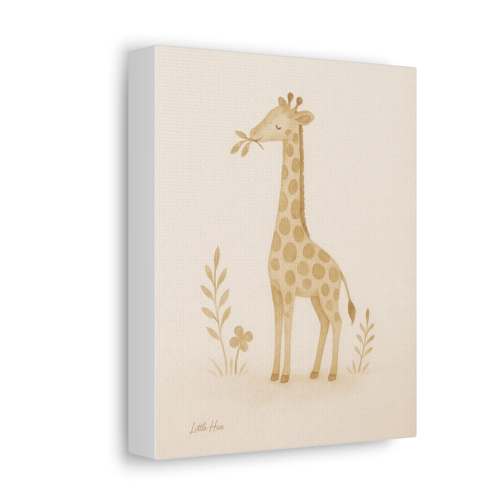 Giraffe Nursery Stretched Canvas — Neutral Baby Room Wall Art