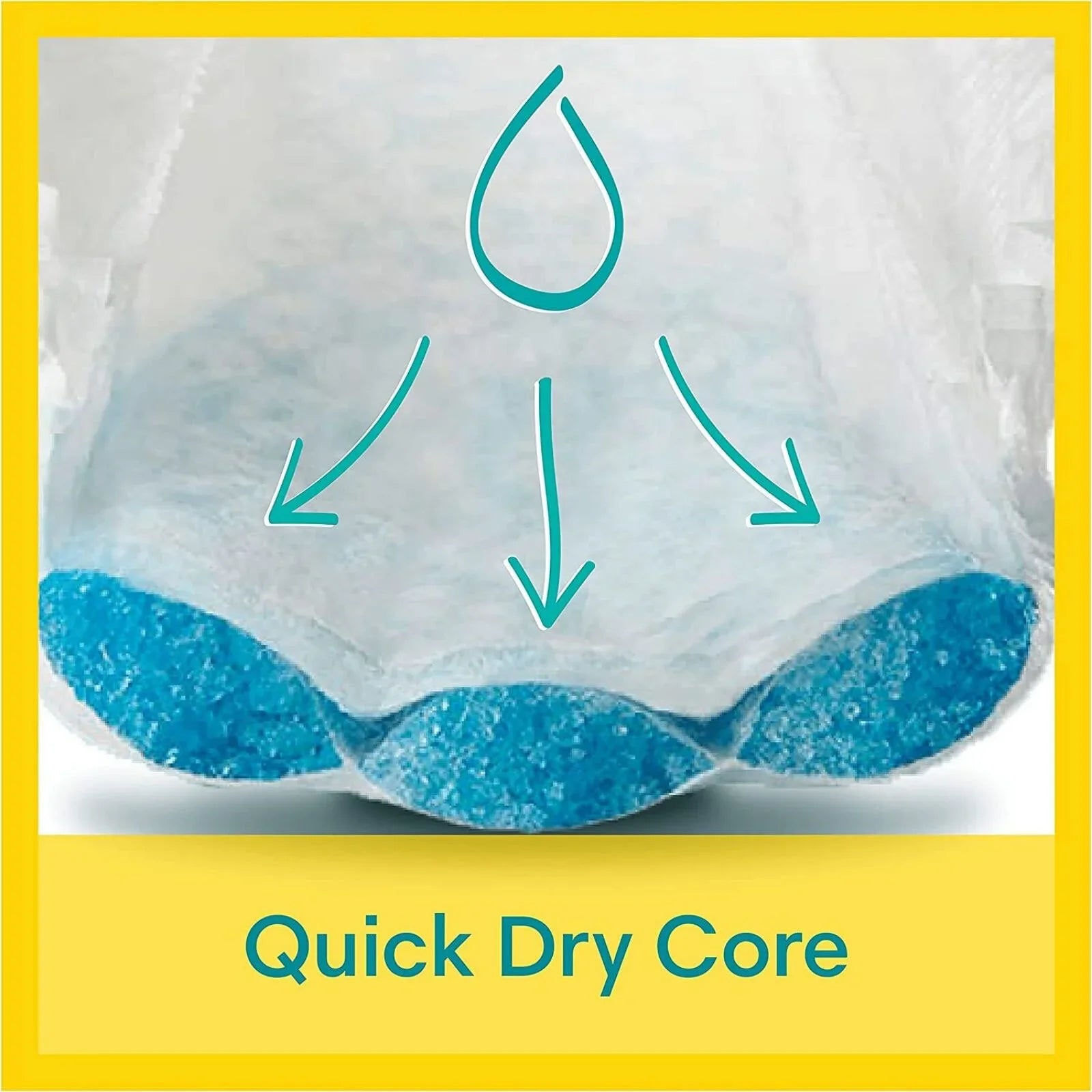 Découvrez l'innovation des couches Pampers Baby-Dry avec leurs 3 canaux absorbants et leurs micro-perles. Grâce à leur capacité d'absorption exceptionnelle, elles peuvent absorber jusqu'à 30 fois leur poids, retenant efficacement l'humidité pour un sommeil ininterrompu jusqu'à 12 heures. Votre bébé se sentira ainsi confortable et au sec au réveil. De plus, nous insistons sur la sécurité : veillez à tenir tous les emballages hors de portée de votre enfant afin d'éviter tout risque d'ingestion. Choisissez Pampers Baby-Dry pour une nuit paisible et un réveil serein.