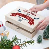 Rendez la veille de Noël encore plus magique et féérique grâce à notre magnifique coffret de Noël familial personnalisé, le cadeau idéal pour apporter une touche de magie supplémentaire à votre foyer. Ce coffret souvenir au charme rustique s'harmonisera à merveille avec tous les styles de décoration de Noël, que vous optiez pour une ambiance féérique hivernale ou une atmosphère chaleureuse et intime avec des guirlandes lumineuses et des bougies.