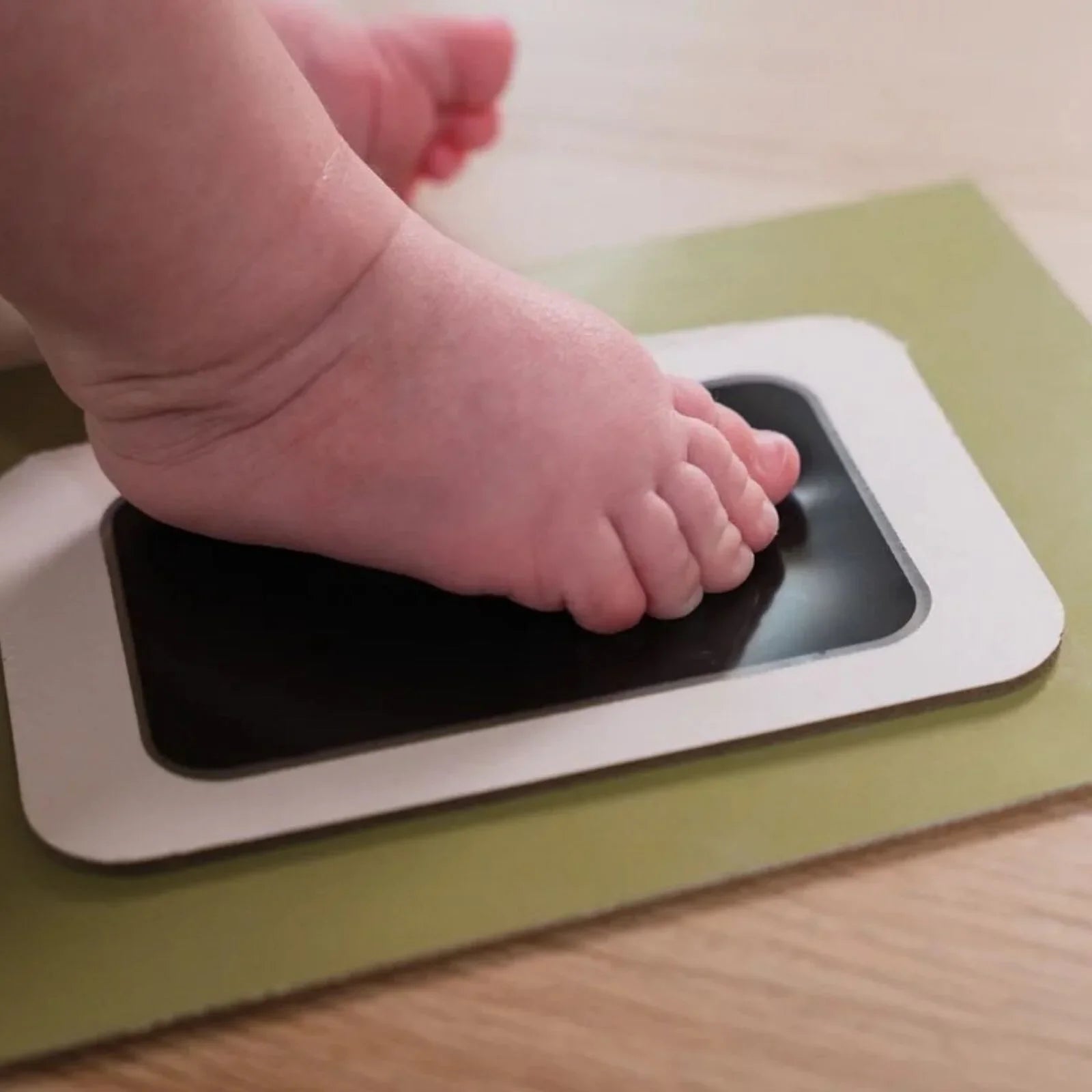 • Zone empreintes mains/pieds sans encre : Un espace central spécial permet de créer des empreintes de mains ou de pieds sans qu’aucune encre ne touche la peau du bébé.