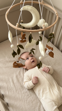 Un mobile pour berceau inspiré des bois, qui apporte la magie de la forêt dans la chambre de votre bébé.