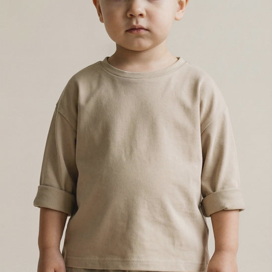 A soft long-sleeve tee made from 100% cotton with a simple O-neckline and relaxed casual fit. Designed in three neutral solid colours, this everyday basic is versatile and comfortable for all seasons.