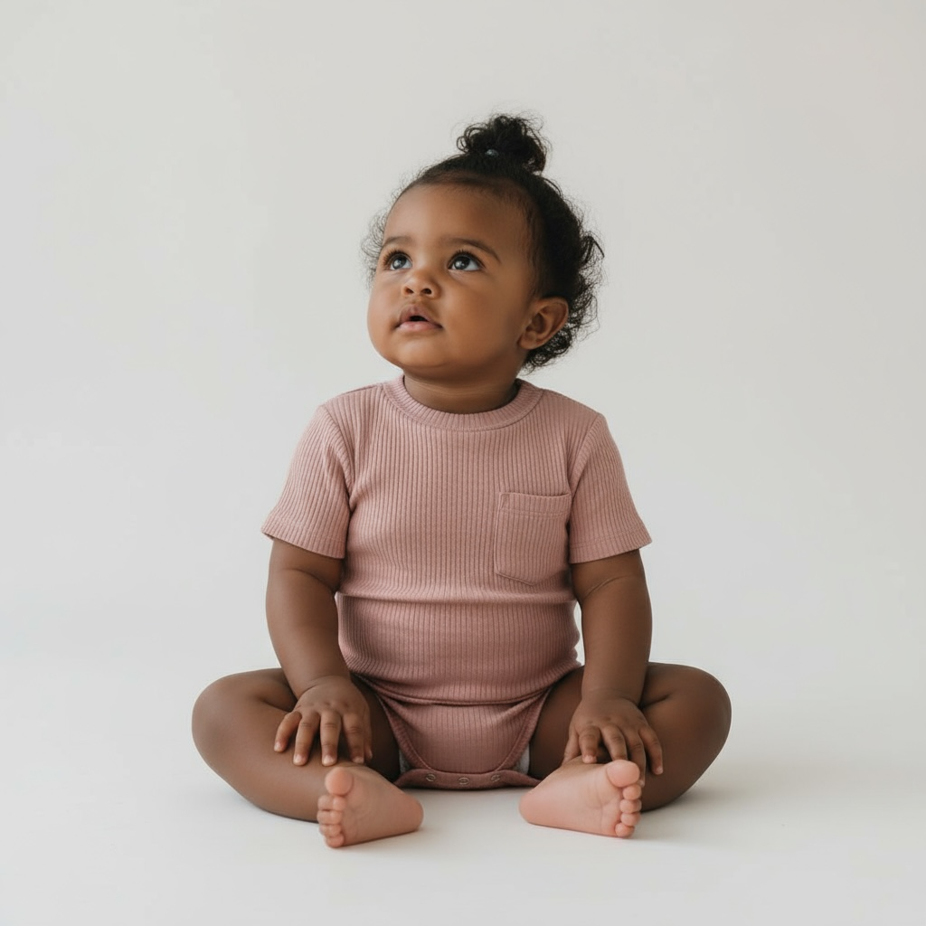 A beautifully simple everyday essential, designed for comfort and ease. This lightweight ribbed romper features a soft, breathable texture perfect for layering or warm-weather wear. The pocket detail adds a sweet, timeless touch.