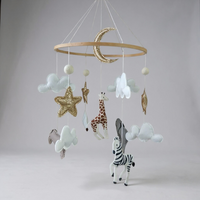 Featuring a shimmering golden crescent moon, glittering stars, and hand-sewn safari friends - including a giraffe, zebra, and elephant – this charming mobile is crafted from soft felt in neutral tones with luxe gold accents. Perfect for above a cot or changing table, it creates a whimsical focal point in any safari or adventure-themed nursery.