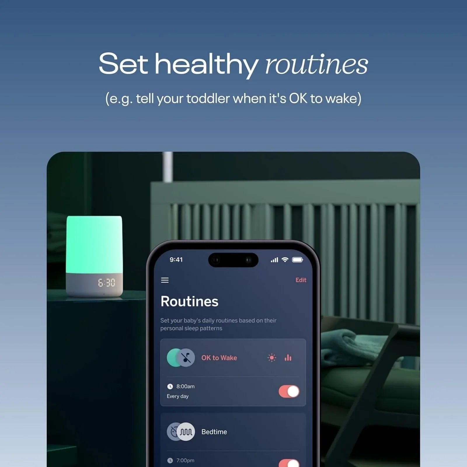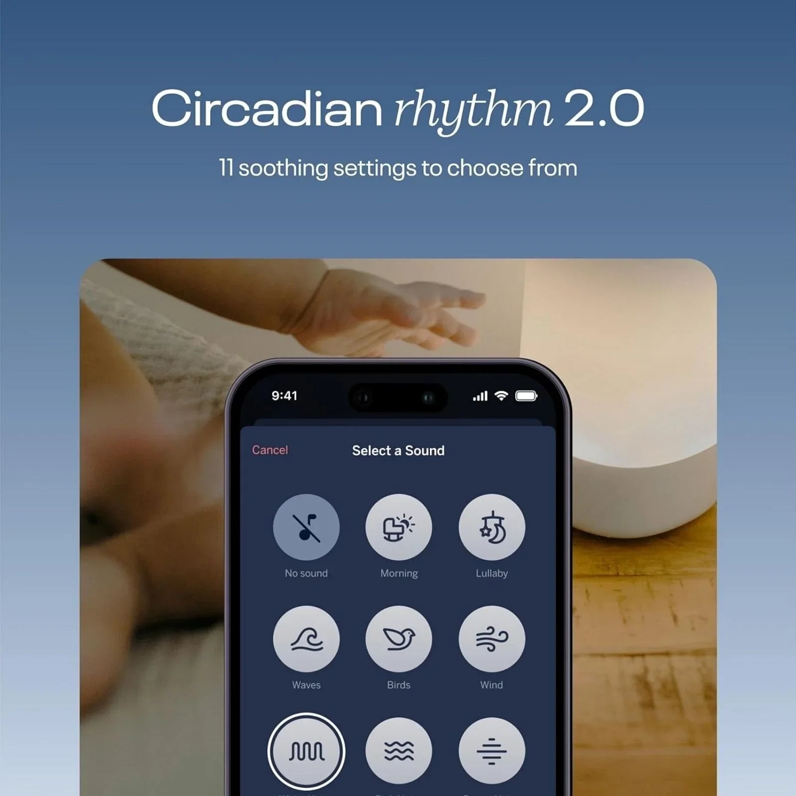• Play white noise, nature sounds, lullabies, and wake-up songs via the app.