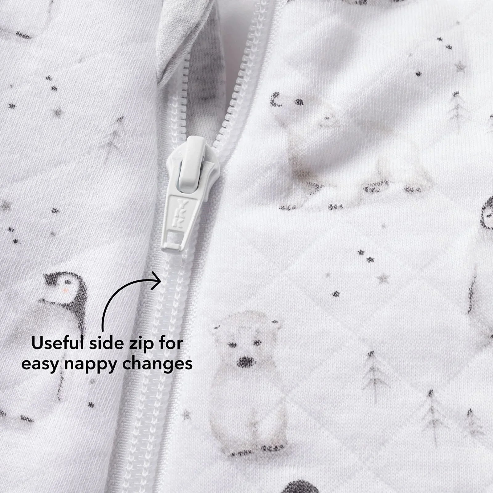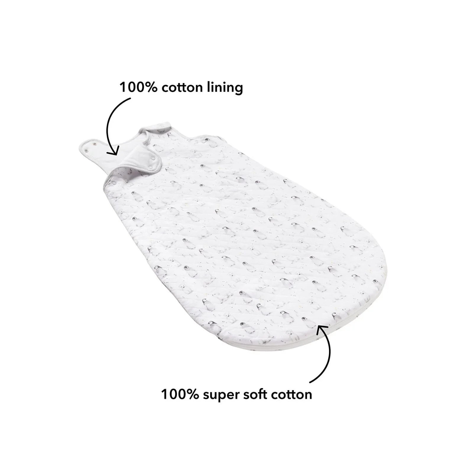 The Nuby Quilted Sleeping Bag Penguin is designed to keep your little one warm and safe during sleep. With its 2.5 Tog warmth, your baby will enjoy a peaceful sleep without kicking off their blanket. It’s also machine washable for easy cleaning. The side zip and popper openings allow you to easily place and remove your baby. Suitable for babies aged 6-18 months (65-86 cm). The best choice for a safe and cosy sleep!