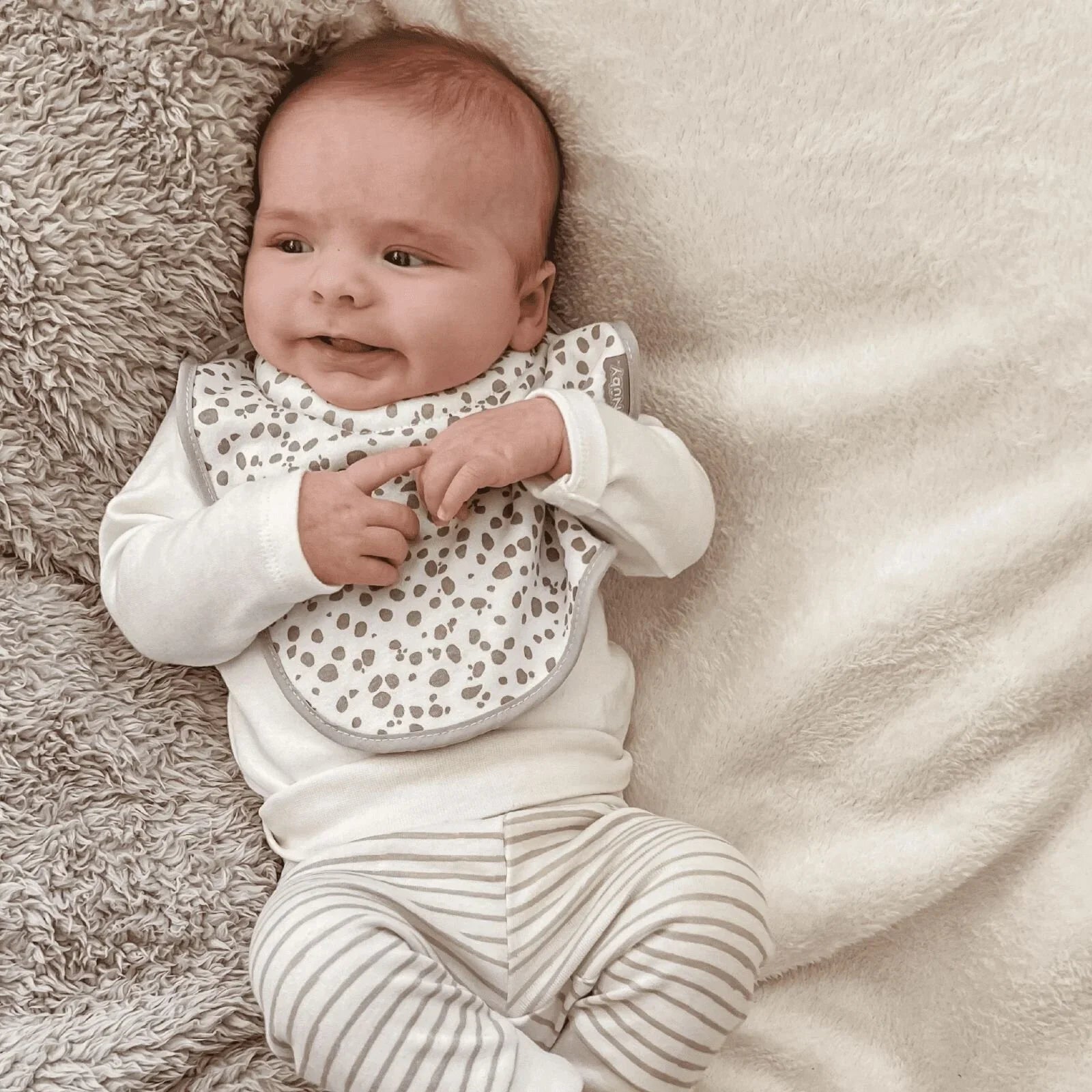 Secure, absorbent and padded neck fastening that’s soft against baby’s delicate skin. Perfect for milk feeding babies. Super-soft organic cotton bibs.