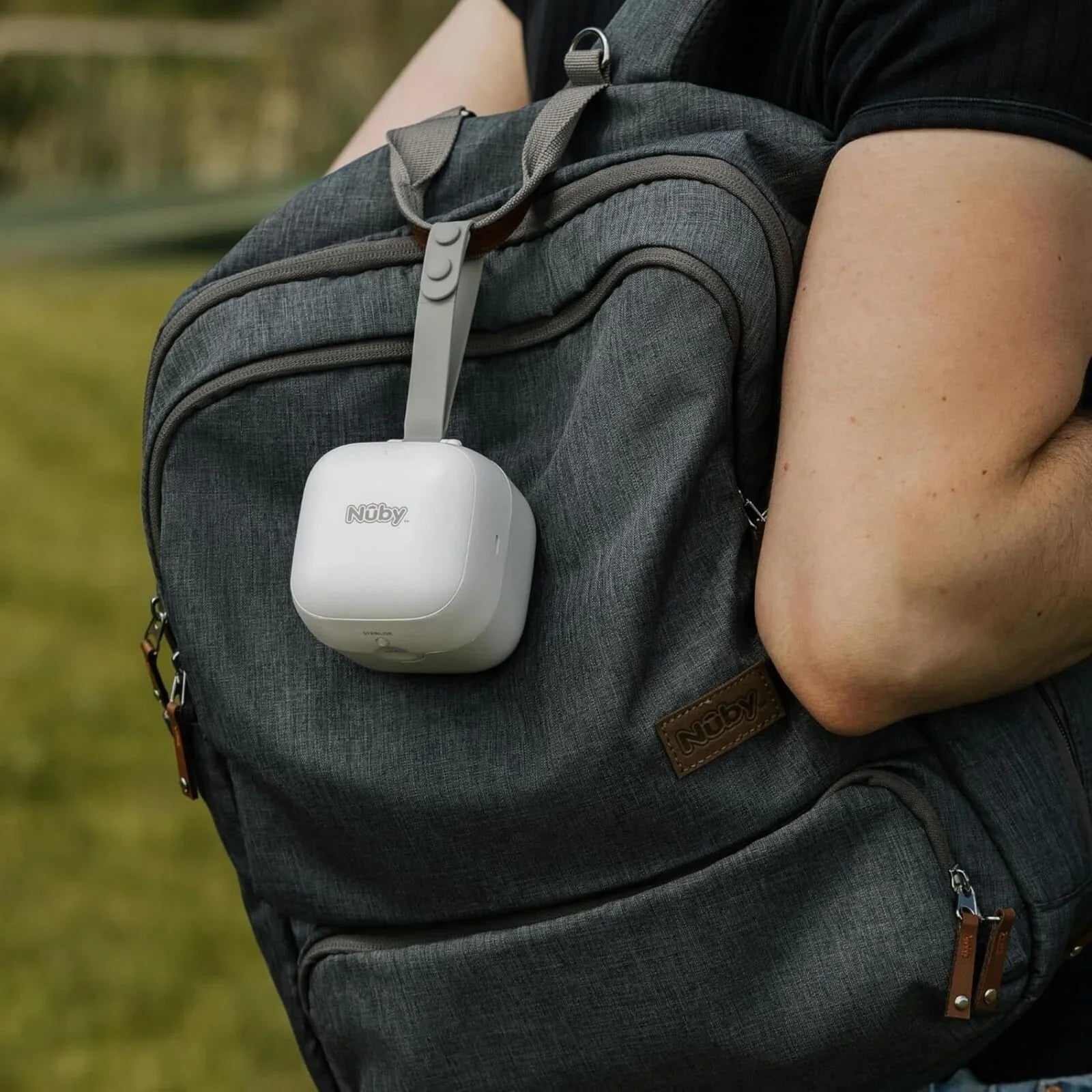 The Nuby UV Soother Steriliser Pod is a practical and innovative solution that sterilises your baby’s dummy in just 1 minute. This compact device works without the need for water, a microwave, or chemicals, using UV light to eliminate 99.9% of bacteria. Its portable design and handy strap make it easy to attach to a pushchair or bag, making it the perfect helper when you're out and about. With no heat involved, it provides fast sterilisation so the dummy is ready to use straight away.
