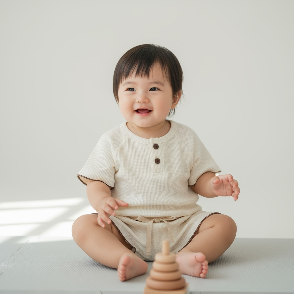 A sweet and airy set for little ones. This cream waffle-textured two-piece features delicate ruffle edging on both the top and shorts, blending everyday comfort with a touch of charm. Made from soft, stretchy cotton for easy movement and breathable wear all day long.